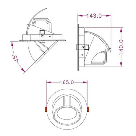 LED Banana Einbauspot 30W ⌀165mm 45° neigbar 360° drehbar