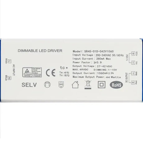 LED-Treiber dimmbar 0-10V 34W 800mA / 38W 900mA / 44W 1060mA